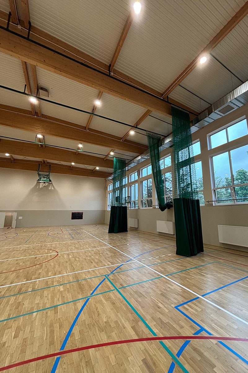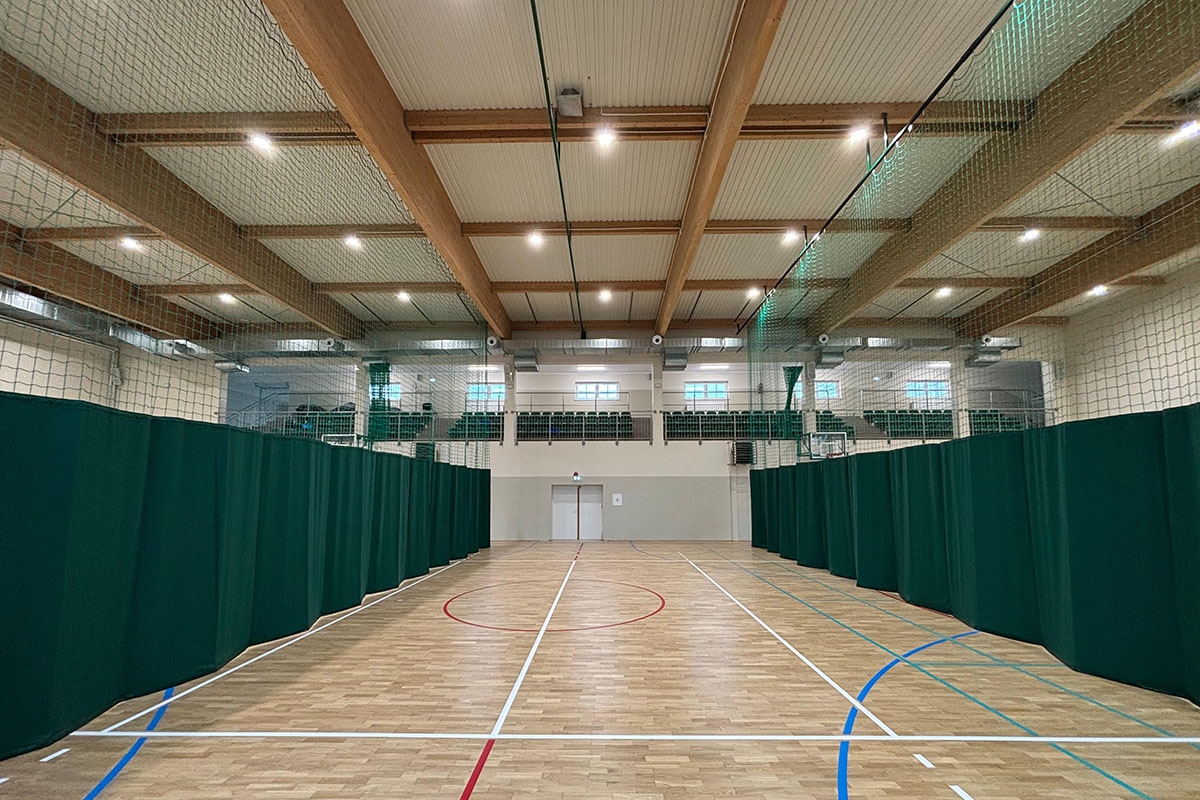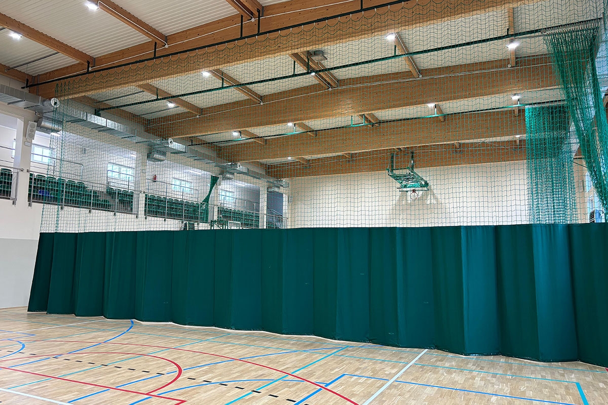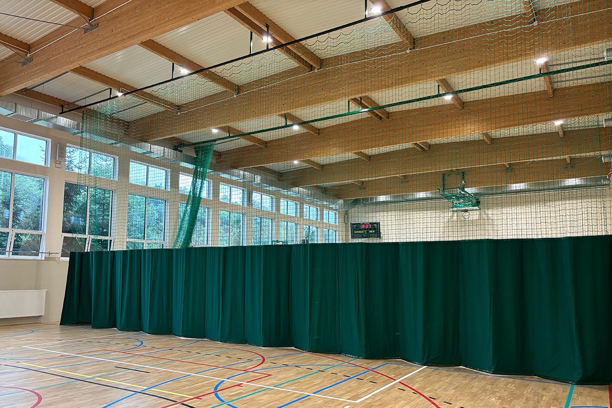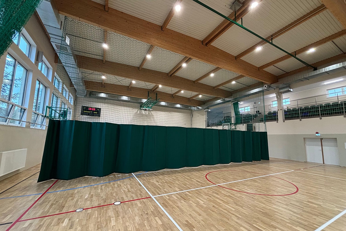 Dostawa oraz montaż kotar dzielących salę sportową mocowanych na konstrukcji z przesuwem ręcznym.