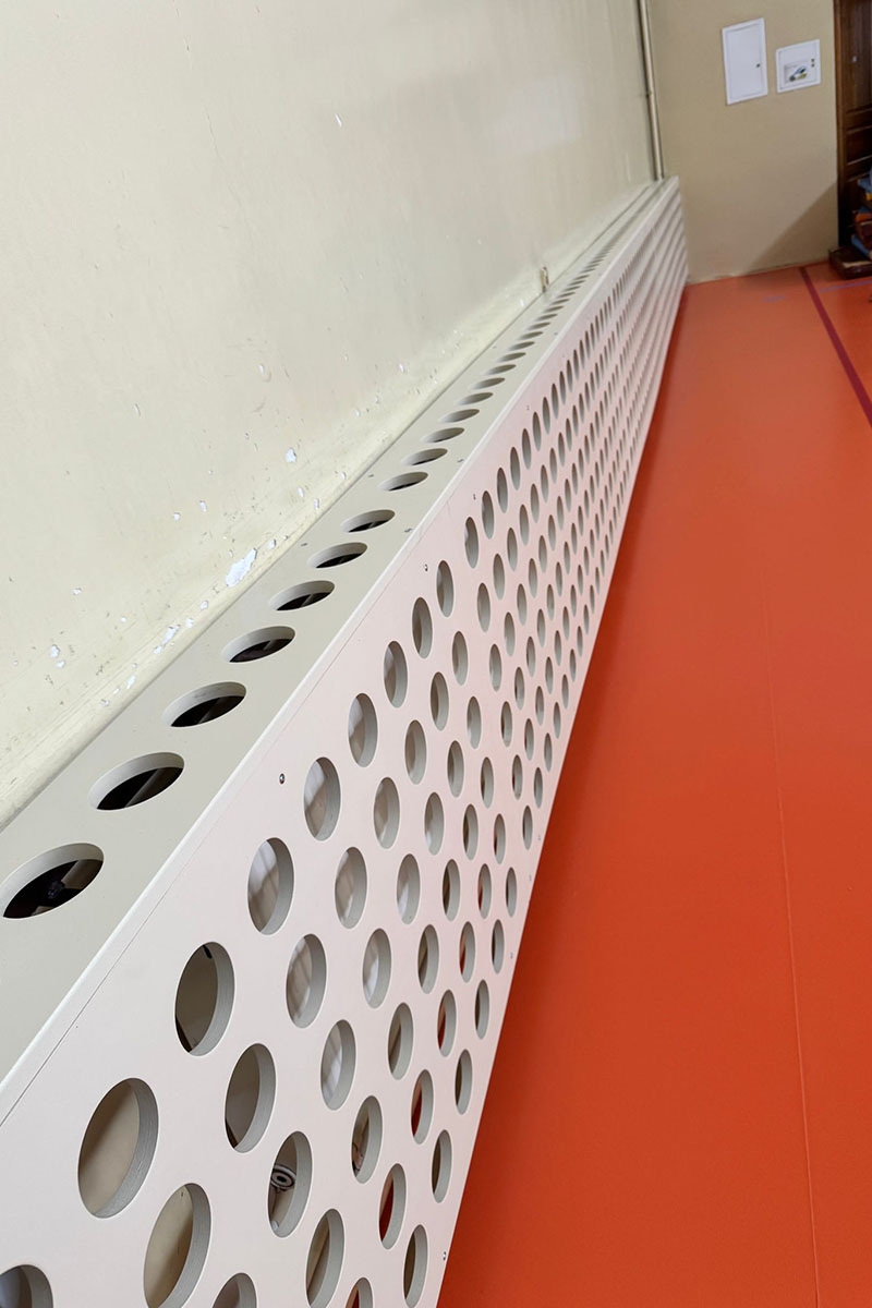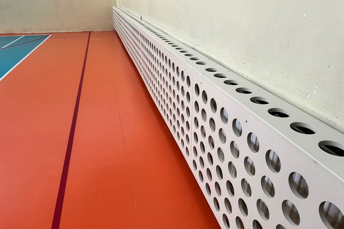 Dostaw oraz montaż osłon na grzejniki sali sportowej.